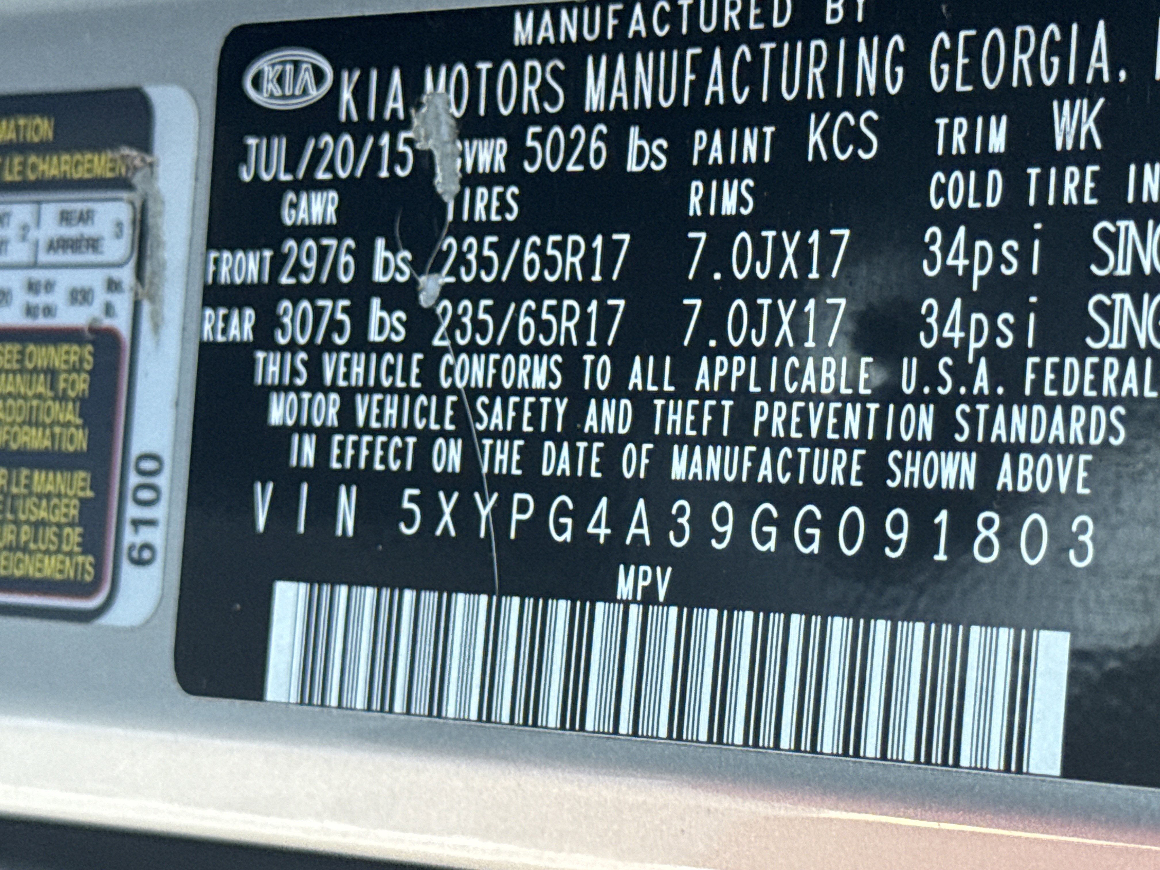 - Vehicle Name: Kia Sorento